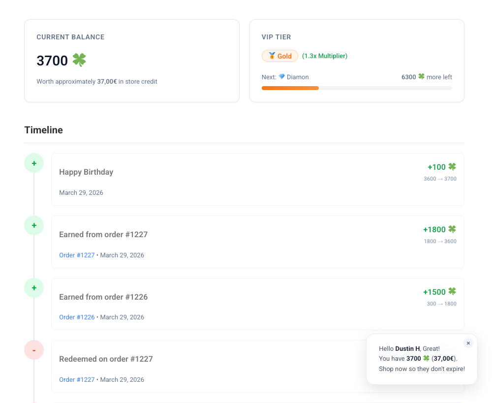 This creates a compelling feedback loop: the higher a customer’s tier, the faster they accumulate points, which drives them to spend more to maintain or advance their status. Each tier can display a unique badge, making the achievement tangible and visible — tapping into the same psychology that makes loyalty programs at major brands so effective.